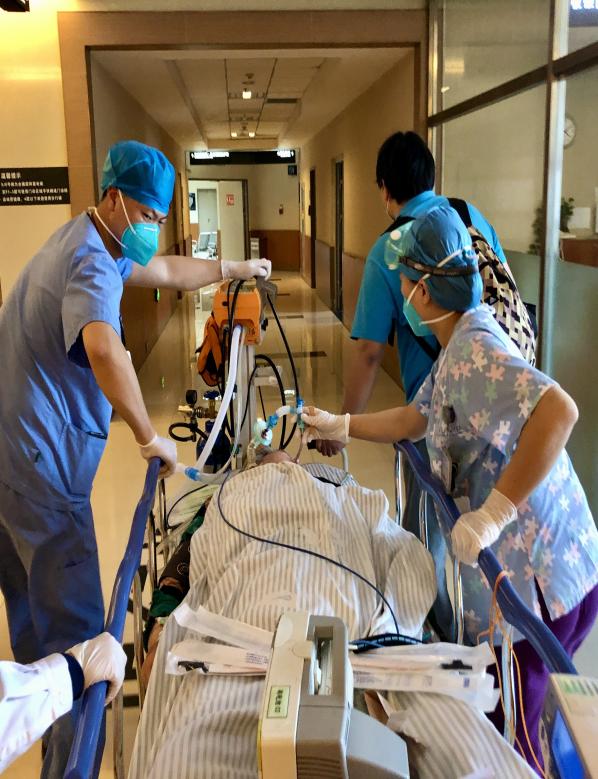 “CT室准备,病人马上到!”危重病人的院内转运,是一场不容有失的“生命通道”护航。转运途中,她们时刻观察患者反应,每一个转弯都小心翼翼,从急诊到CT室的这段路,她们是移动中的“生命安全堡垒”,也成就了安全无虞的“生命通道”。