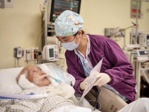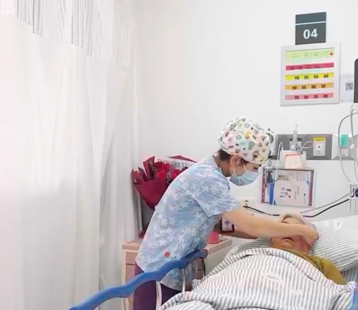 凌晨三点,人体陷入最困倦的时刻,EICU内的“战斗”却仍在无声进行。护士紧盯屏幕上每一个跳动的参数,分析着每一丝细微的变化,哪怕是0.1的数值波动都逃不过她们的眼睛。为卧床患者翻身拍背、细致吸痰、精准调整药物泵速……,她们像精密的“生命工程师”,用无限的耐心与精准的判断,牢牢守住生命的最后一道防线。