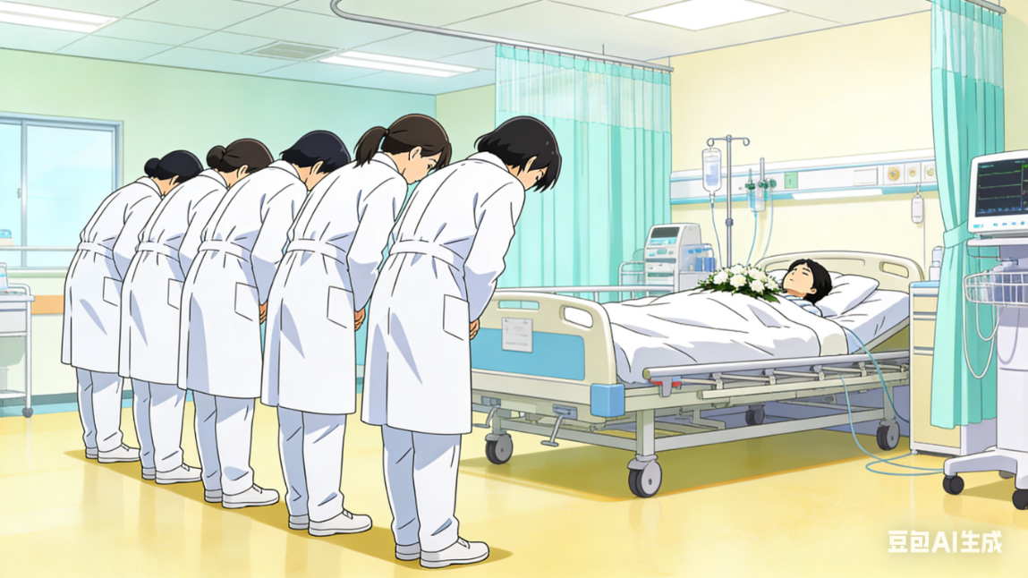 整理妥当后,李医生带着团队重新走进病房。我们都默默地整理好工作服,站成一排面向病床。“王阿姨,感谢您一直以来的信任与配合,我们送您最后一程,祝您旅途愉快。”李医生话音落下,我们深深鞠躬,腰弯成九十度,久久没有直起。阳光透过玻璃窗,把我们的影子拉得很长,覆在王阿姨的床沿,像一场无声的守护。