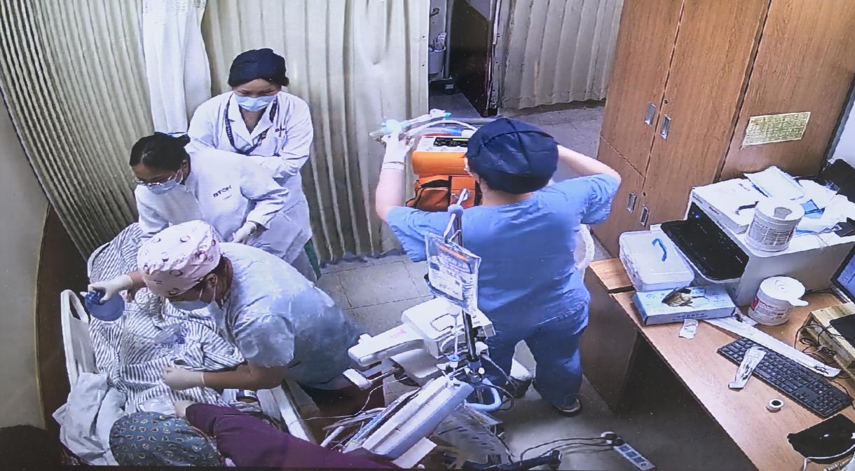 危机当前,急诊医护团队第一时间启动危重症抢救流程,护理组长葛秀艳、护士郭晨雨以“零延迟”速度投入战斗—凭借多年急诊实战经验,二人迅速协助患者保持平卧体位,同步完成生命体征测量、心电监护连接、高流量吸氧等操作,仅用90秒便开通两条静脉通路,为后续治疗抢下“黄金时间”。与此同时,护理团队联系呼吸治疗师,提前备好呼吸机、气管插管等全套设备,用精准预判为抢救扫清障碍。