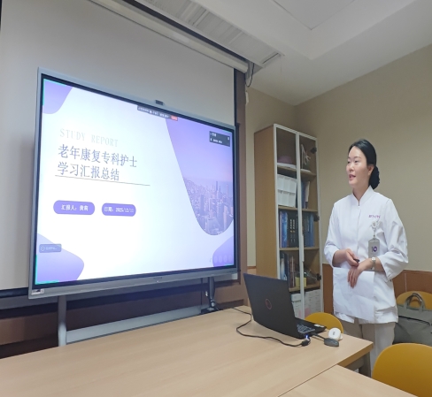 12月10日上午,三名专科护士就培训所学进行了集中汇报交流,并围绕各自岗位提出了清晰可行的工作规划。12A病房张玉玲护士将以老年综合评估为基础,重点开展吞咽障碍安全管理与肌少症综合防控,着力构建“医院‑社区‑家庭”联动的康复服务链。11B病房齐佳然护士将专注于认知障碍的系统性康复,推行专业认知评估与训练,为老年患者制定个体化运动处方,以非药物干预延缓认知衰退。天通苑北社区卫生服务中心黄莉护士则将深入基层,开展居家康复上门服务,通过科普宣教提升公众康复意识,并承担起培养基层康复护理人才的任务。