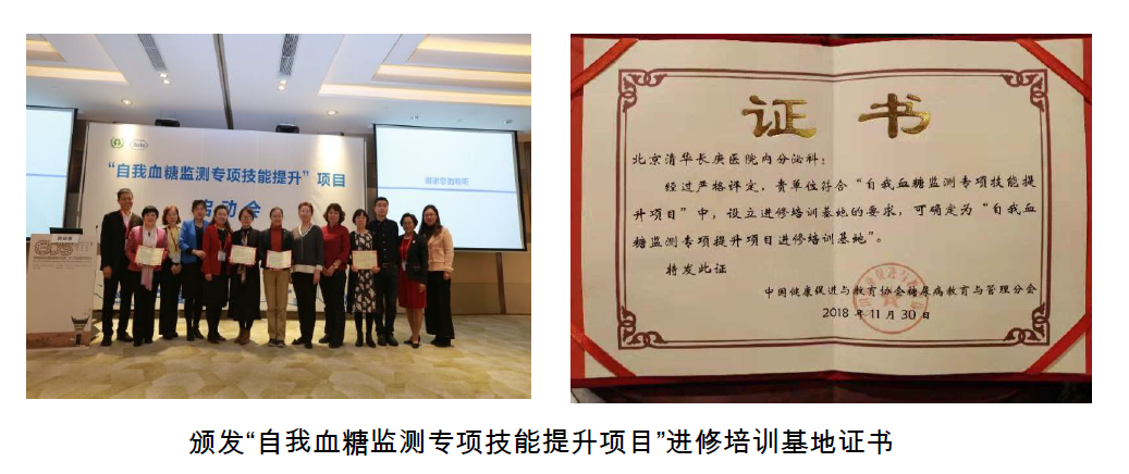 与此同时,由中国健康促进与教育协会糖尿病教育与管理分会在本次大会期间进行了“自我血糖监测专项技能提升项目”的启动,经过严格的评定,全国共有四家医院被评为进修培训基地,我院是四个基地之一。