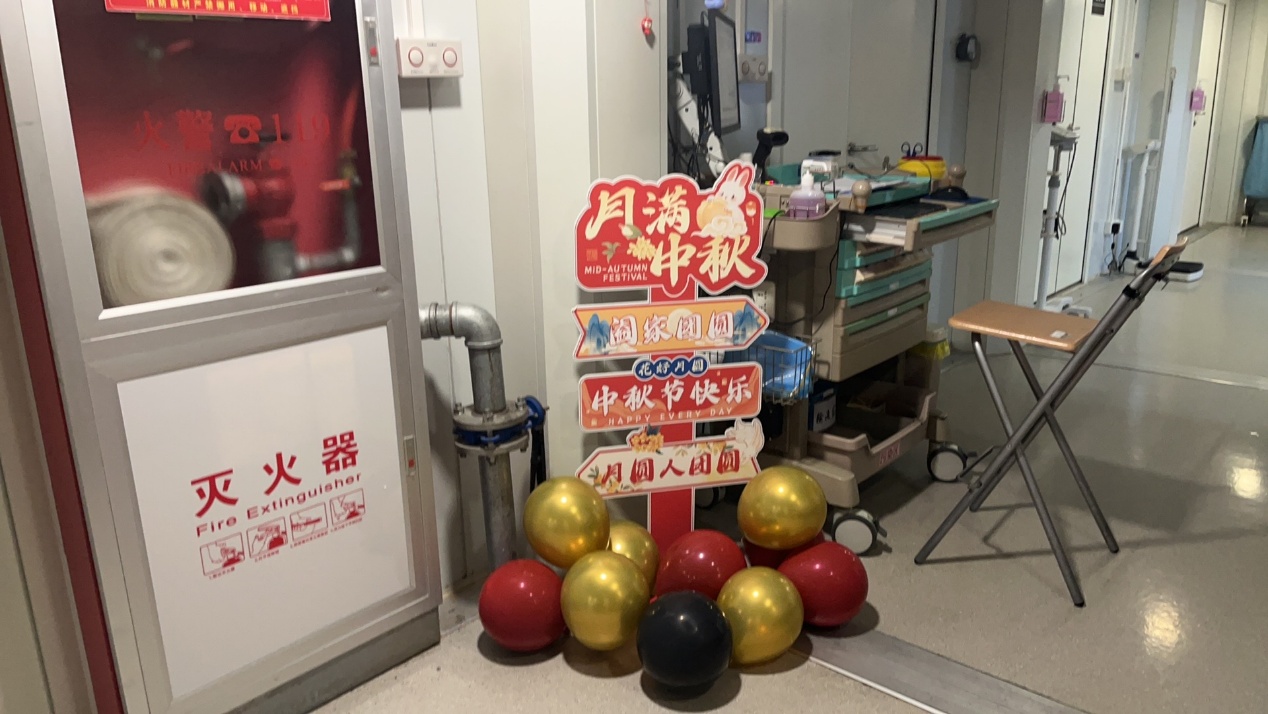 一轮明月,照亮人间团圆路;一河星灯,温暖生命归途人。中秋佳节这天,北京清华长庚医院安宁病房一改往日的静谧,被一片温暖的金色包裹。金色与红色的气球簇拥着路标,生命长河前,电子蜡烛与金黄色的小灯次第亮起,宛如星河落地,映照着“爱映长河”四个立体而温暖的大字。这里,一场以“月满心河”为主题的中秋庆祝活动正在进行,没有喧闹,只有流淌于心的温暖与相伴。