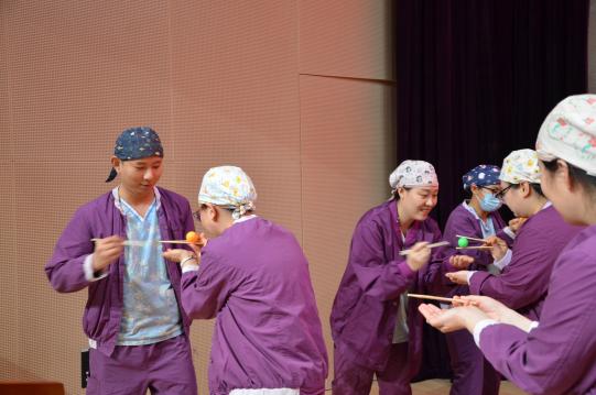 在轻松愉快的游戏环节,“齐心协力”夹乒乓球接力赛,完美模拟了急诊抢救中“快”与“稳”的平衡艺术,考验着团队的协作与精准;“心有灵犀”猜词游戏,则生动展现了战友间无需言语的深刻默契。场上参赛者全情投入,场下观众加油助威,笑声与掌声不断,游戏不仅放松了身心,更在欢笑声中让团队的心靠得更近。