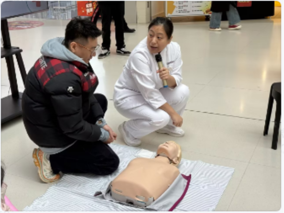 健康科普讲堂环节,三位资深护理专家围绕群众关注的健康热点带来专题分享。呼吸科护理专家李星阳以《雷雨过后,别着急出门,警惕雷暴哮喘》为题,结合实际案例,解析雷暴哮喘的成因,讲解高风险人群识别、日常预防及突发症状应急处理方法,助力群众科学规避呼吸道健康风险。新生儿护理专家王皓月的《宝宝吐奶别慌张,科学判断帮大忙》,为新手爸妈拆解宝宝吐奶原因,明确生理性与病理性吐奶的核心差异,现场演示正确喂奶、拍嗝方法,传授吐奶应急处理技巧。急诊护理专家王莹带来《心肺复苏技术》讲解,结合2024版《中国公民健康素养66条》要求,现场演示心肺复苏完整流程,强调“黄金4分钟”的重要性,手把手指导群众操作并讲解AED使用方法,让大家掌握实用救命技能。