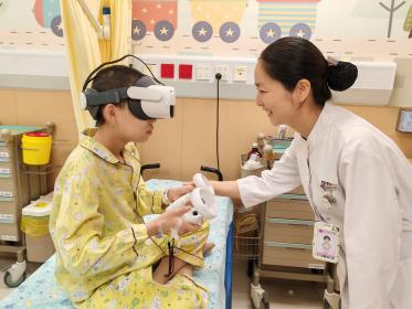 最受孩子们欢迎的,是我们的VR情景体验。当治疗的间隙,我们为孩子戴上VR眼镜,他们瞬间可以穿越病房的四面白墙,置身于蔚蓝的海底与鱼儿共游,或是在广袤的太空遨游星际。尤其是在穿刺的时候,孩子们沉浸在VR的世界里,他们忘记了身上的针管,忘记了病痛,脸上绽放出久违的、纯粹的笑容。有一位小女孩在体验后悄悄告诉我:“护士阿姨,我刚才去看了大海,海水凉凉的,我的病好像也被冲走了。”那一刻,我坚信,心灵的愉悦,本身就是一剂效力强大的良药。