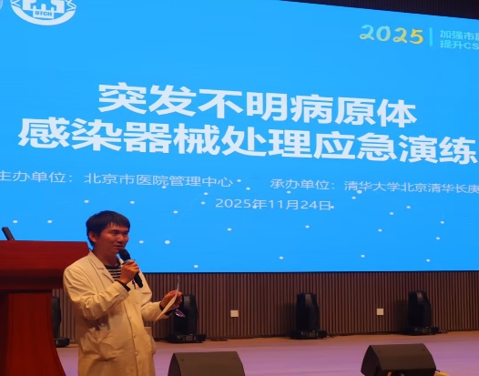 为进一步强化医院感染防控工作,提升消毒供应中心应对突发公共卫生事件的能力,2025年11月24日下午,由北京市医院管理中心组织、北京清华长庚医院承办的“第二批消毒供应中心应急演练观摩活动”在我院顺利举行。活动由我院感控办主任吴圣主持。活动以“突发不明病原体感染器械处理应急演练”为主题,采用桌面推演形式,吸引了市属9家医院及昌平区兄弟医院的感控与消毒供应专家前来观摩交流。