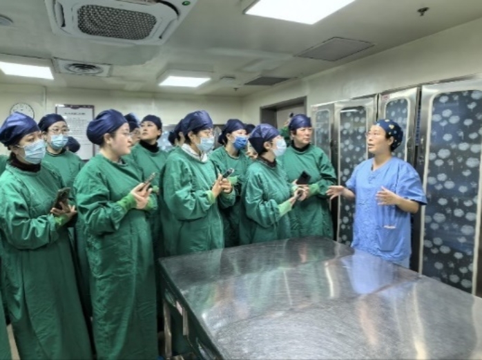 随后,我院消毒供应中心护士长就科室建设作简要介绍,内容涵盖科室硬件设施、管理模式、质控体系以及近年来在护理科研与专业创新方面的探索与发展,全面展示了我院消毒供应中心专业化、标准化的管理水平。
