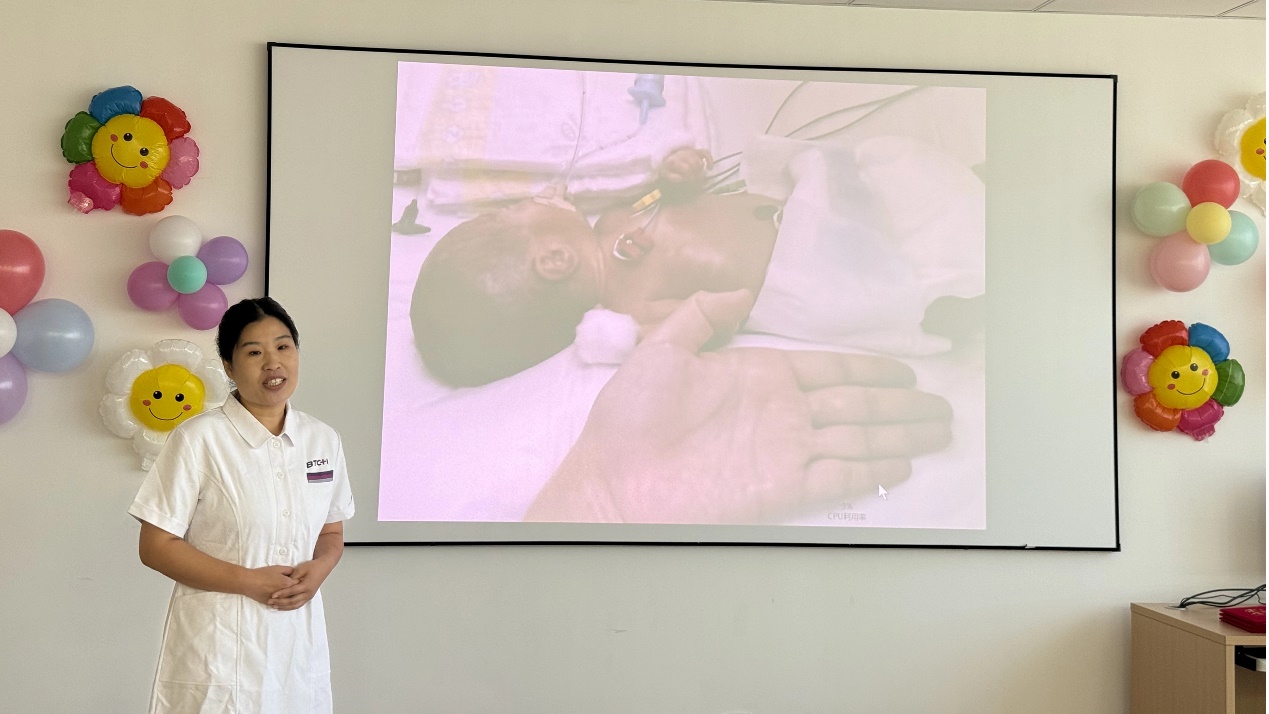 新生儿重症监护室资深护士杨倩以《守护初生之光》为题,生动再现照护 32 周早产儿 “暖暖”(化名)的全过程,通过精准监测、温柔抚触、耐心沟通三个维度,深刻阐释新生儿护理 “精准之力”“治愈之力”“桥梁之力” 的核心内涵,让听众感受到早产儿护理中的专业与温情。