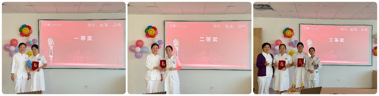 比赛尾声,评委肯定了护理团队的故事与情感价值,并从背景音乐、图片、演讲内容等方面给出专业建议。最终评选结果出炉:新生儿重症监护室杨倩获一等奖,儿科病房李学清获二等奖,儿科门急诊姚玉洁、邵文瑞获三等奖。