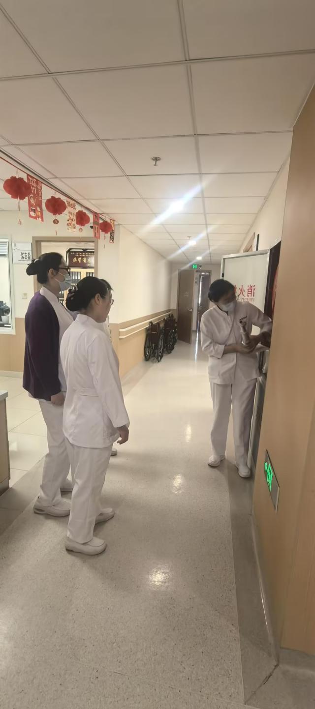 春节将至,北京清华长庚医院护理部在副院长高凤莉部署下,由闫伟娜副主任牵头,联合安全卫生管理委员会、护理品质管理委员会开展节前专项安全检查,聚焦临床重点环节与潜在风险,以严细实举措筑牢节日医疗安全屏障。