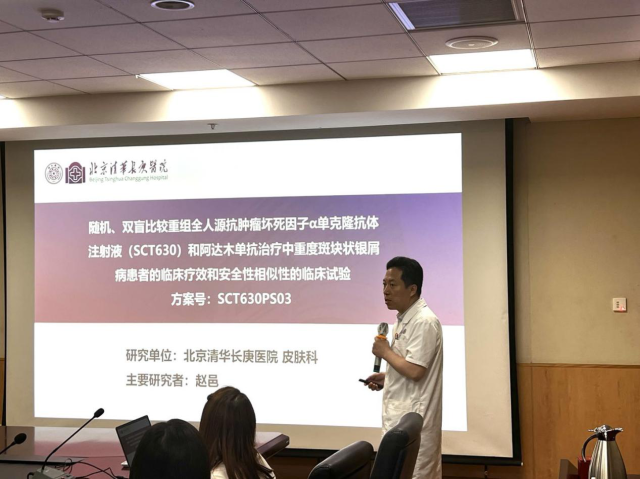 主要研究者赵邑对我院皮肤科及SCT630项目的方案设计及该项目在本院的开展情况等进行了介绍。