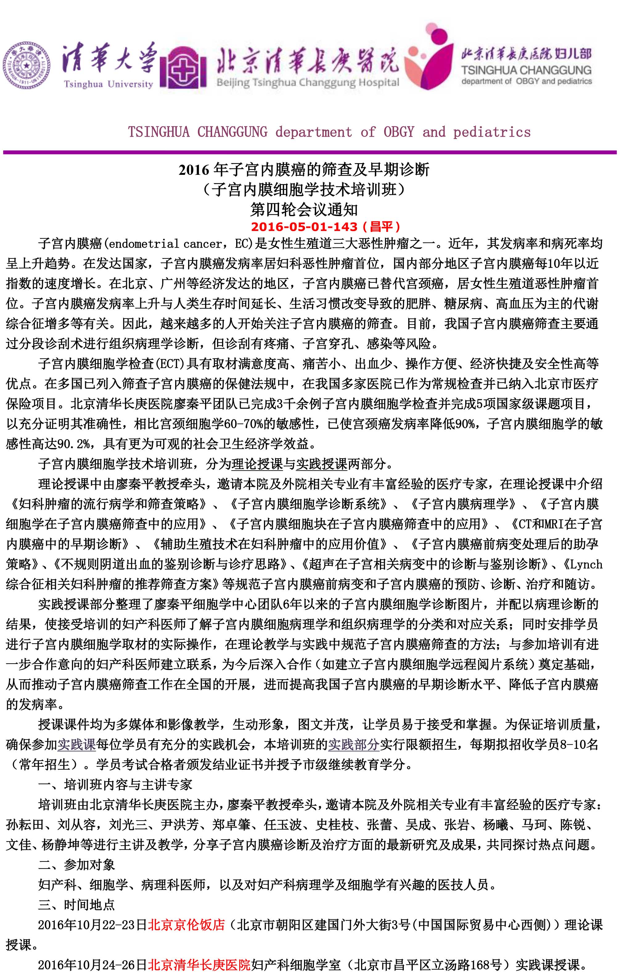 子宫内膜癌的筛查及早期诊断(子宫内膜细胞学技术培训班)邀请函