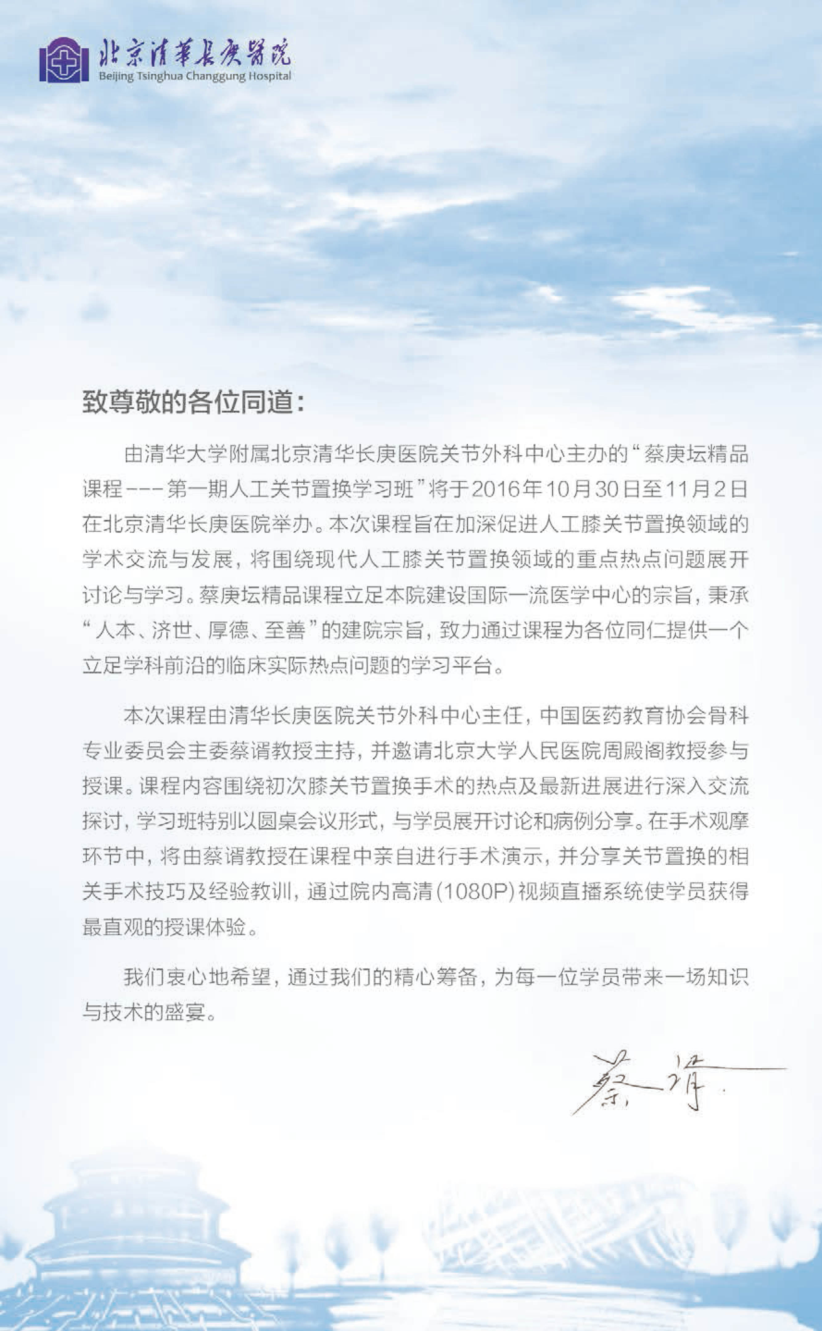 蔡庚坛精品课程之人工关节置换学习班(第一期)邀请函