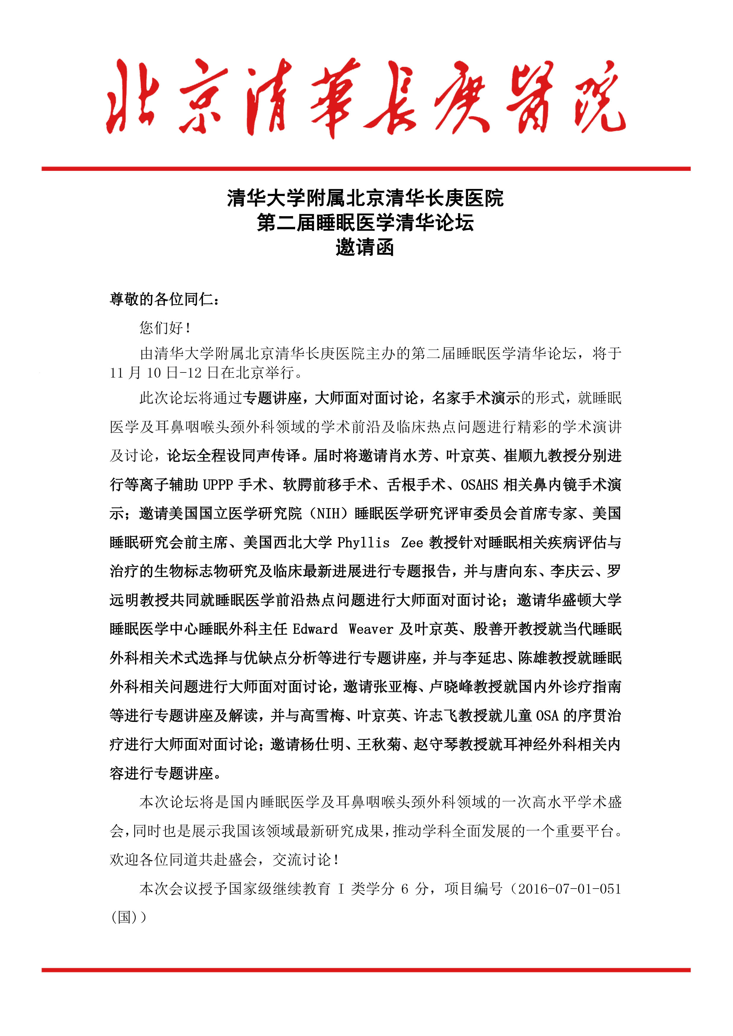 第二届睡眠医学清华论坛邀请函