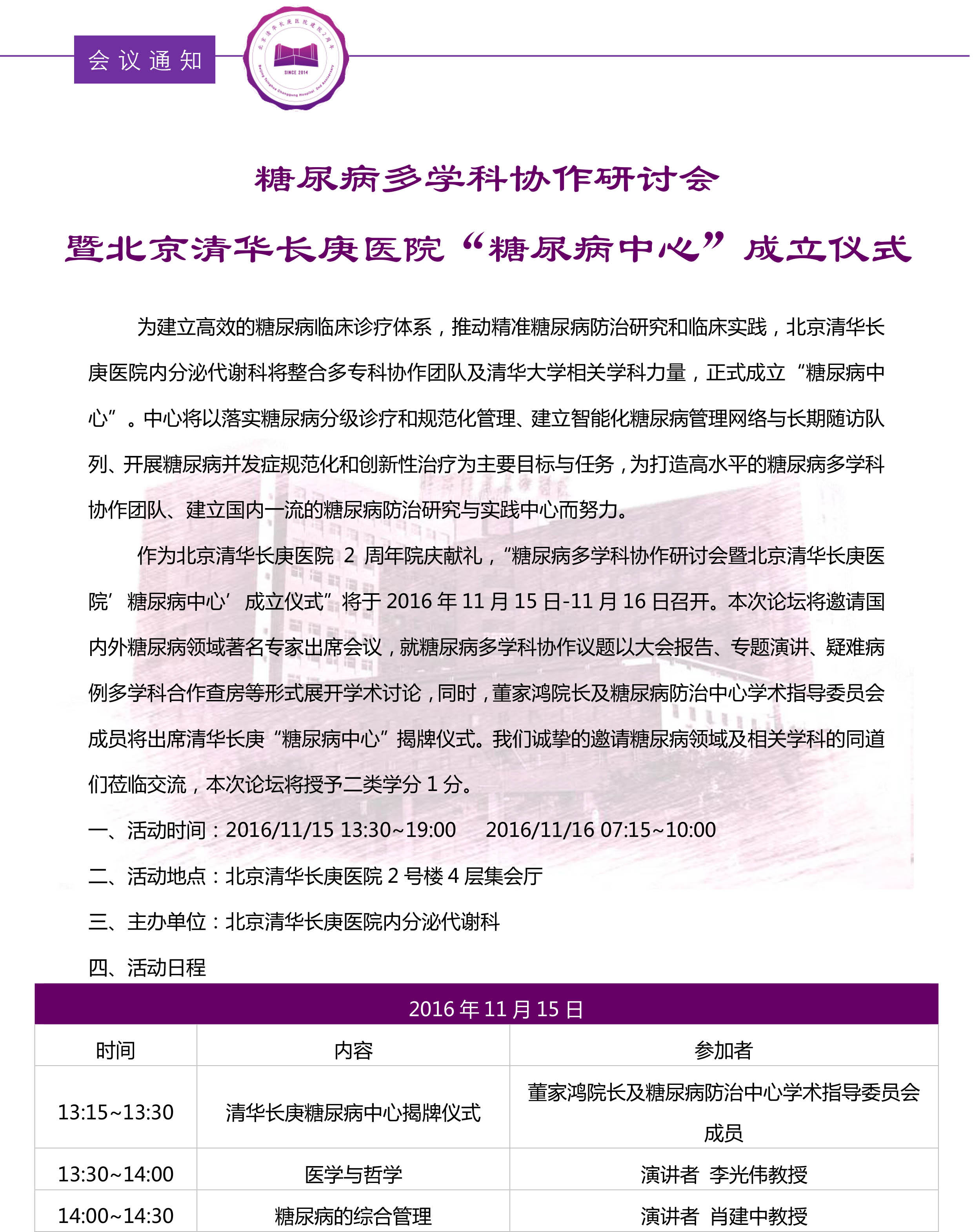 糖尿病多学科协作研讨会暨北京清华长庚医院“糖尿病中心”成立仪式
