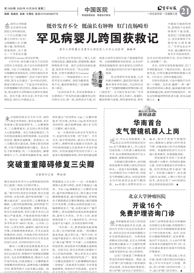 清华长庚医院儿外科由国际著名的小儿外科专家李龙主任医师担任学科带头人,现有主任医师1名,副主任医师1名,主治医师2名,住院医师2名。学科特色 :小儿腔镜外科技术,其应用占比达到75%以上;在胆总管囊肿、胆道闭锁和门脉高压等肝胆畸形方面在国际上享有盛誉;创新了一系列治疗肛门闭锁、巨结肠等肛肠畸形新的治疗理论和手术术式;儿童复杂疑难实体肿瘤诊治有独到之处。 科室以小儿常见和复杂疑难普外及新生...