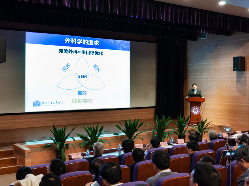 北京清华长庚医院执行院长董家鸿在“精准肝胆外科大师班”上做主题发言