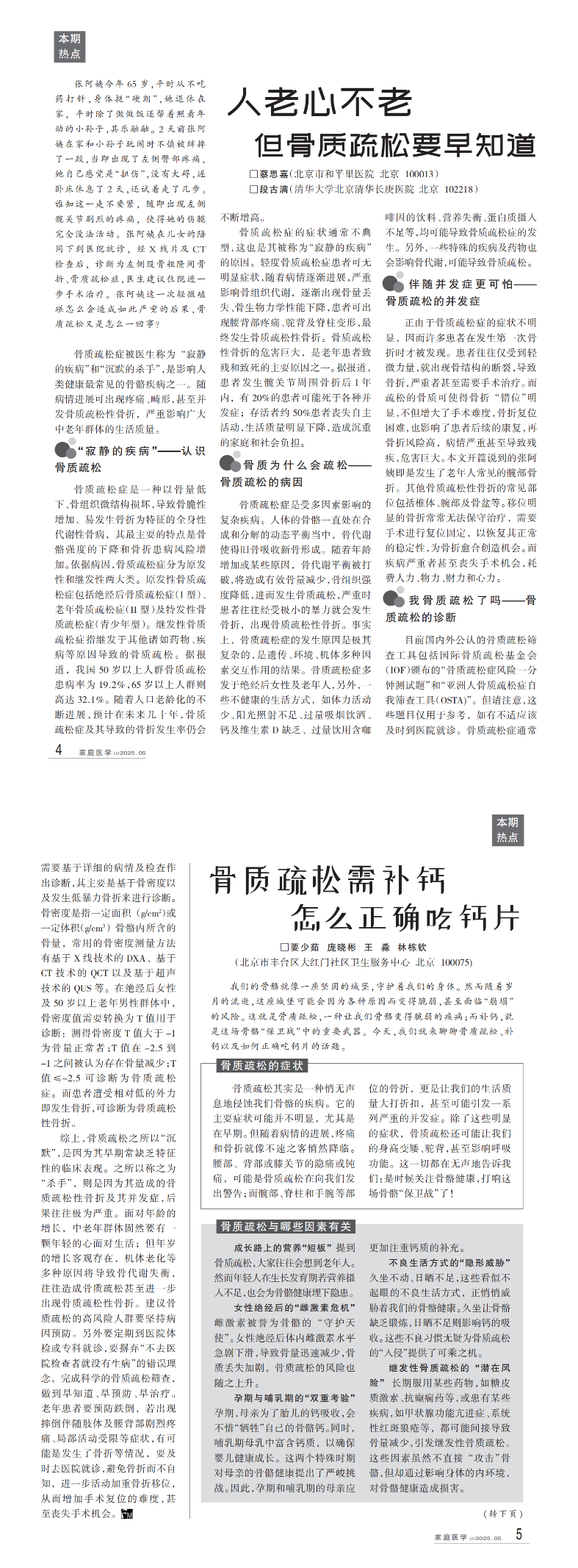 骨质疏松症被称作“寂静的疾病”和“沉默的杀手”,是影响人类健康最常见的骨骼疾病之一,随病情进展可出现疼痛、畸形,甚至并发骨质疏松性骨折,严重影响广大中老年群体的生活质量。
