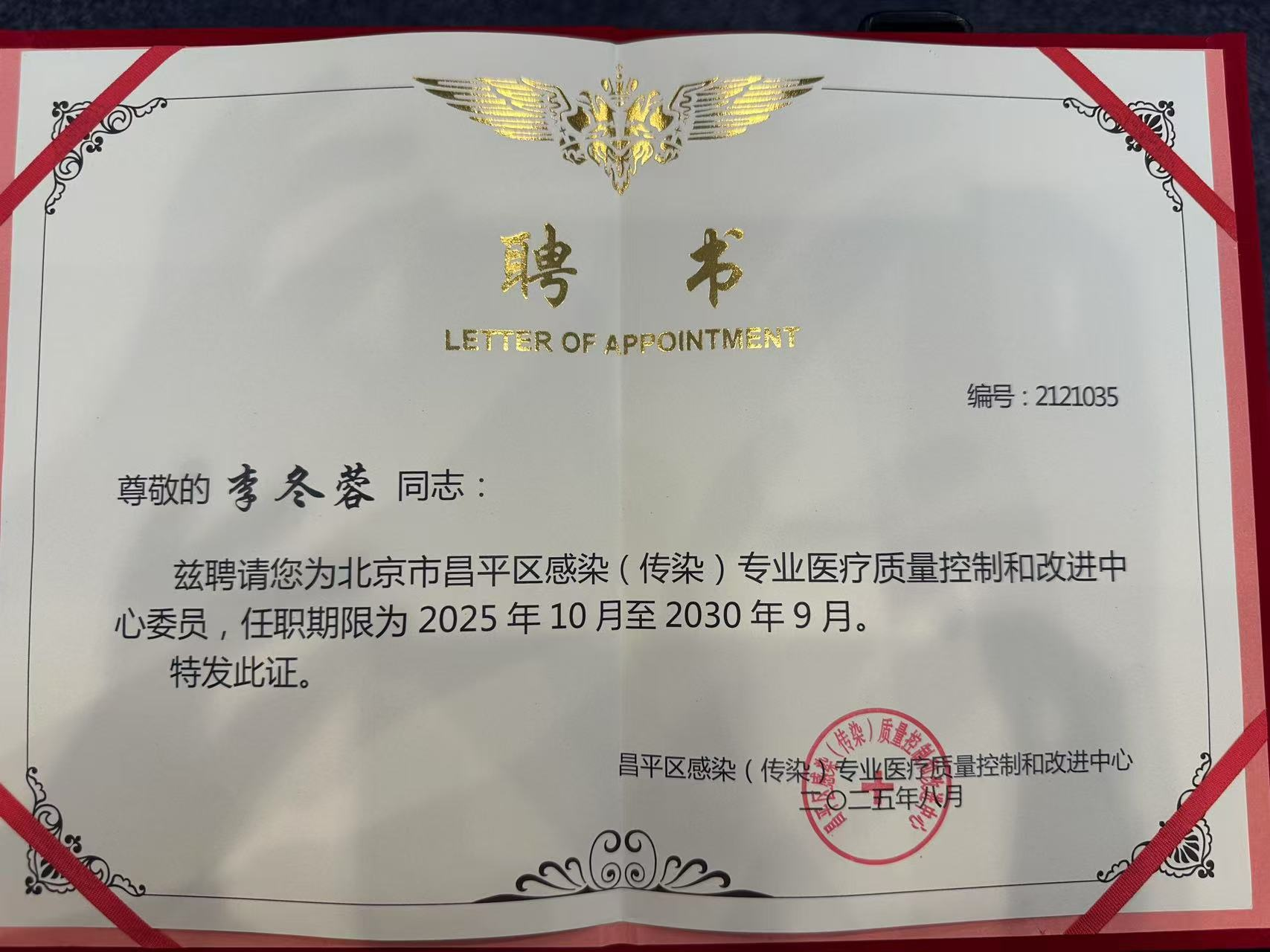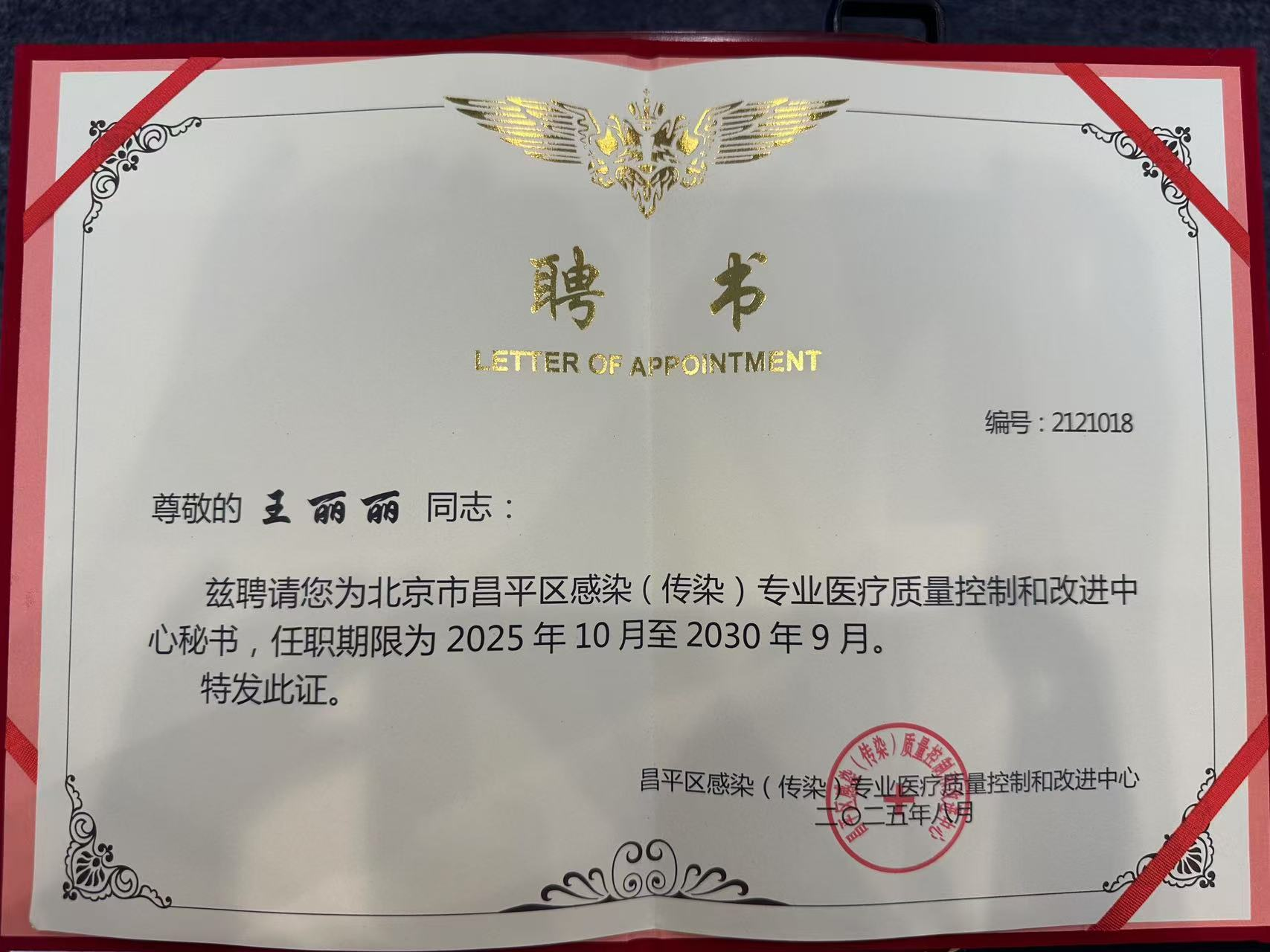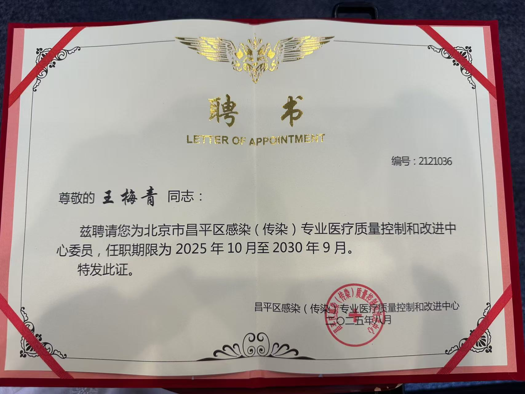 国内各位专家学者就当前感染(传染)性疾病热点问题做了汇报和交流,清华长庚感染性疾病科林明贵主任就《免疫功能-防治结核的利器》做了分享。同时会议对昌平区感染质控中心委员颁发了聘书及合影,我院林明贵主任担任常务副主任委员,马序竹主任、林思勇主任、李冬蓉护士、王梅青感染控制专员担任委员,王丽丽医师担任秘书。