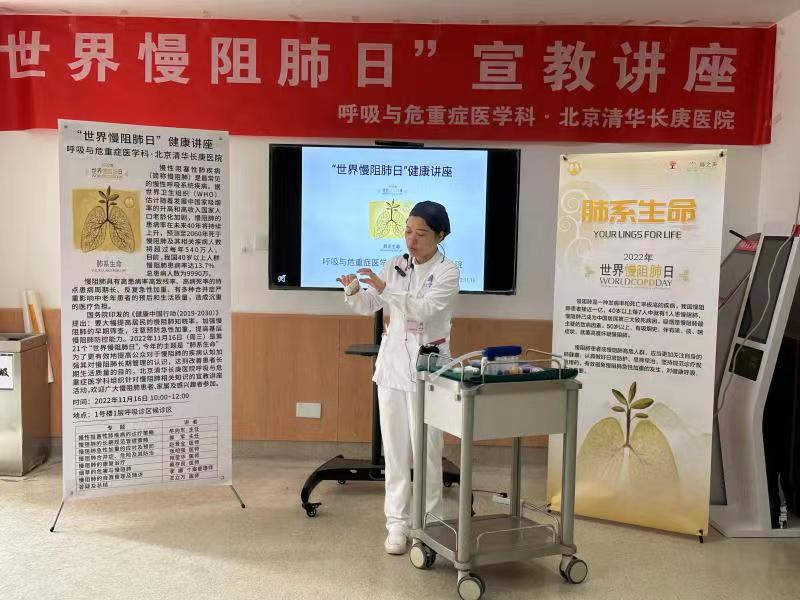 国务院印发的《健康中国行动(2019-2030)》提出:要大幅提高居民的慢阻肺知晓率,加强慢阻肺的早期筛查,注意预防急性加重,提高基层慢阻肺防控能力。2022年11月16日(周三)是第21个“世界慢阻肺日”,今年的主题是“肺系生命”。为了更有效地提高公众对于慢阻肺的疾病认知,加强其对慢阻肺长期管理的认识,达到改善患者长期生活质量的目的,北京清华长庚医院呼吸与危重症医学科组织针对慢阻肺相关知识的宣教讲座活动,并获得圆满成功。