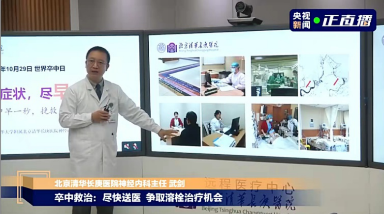 神经中心主任武剑医师、赵蕾副主任医师、魏宸铭主治医师及清华大学医学院李睿研究员受邀做客央视新闻,重点阐述脑卒中的防治现状,倾情推出原创“脑卒中高危人群筛查小程序”,老百姓在家便可扫码自查脑血管病危险因素。自2017年以来,北京清华长庚医院联合清华大学信息化技术平台,逐步建成面向京北地区的卒中防治网络,14家公立医院及120、999等急救系统共同参与其中,全面提升了京北地区脑卒中的救治水平。神经中心将在下一阶段目标建成脑卒中智能医疗服务平台,为居民提供脑卒中一键式呼救、接诊和救治体系,实现医疗资源的优化配置。据最新统计,直播在新浪微博观看量达191万,各平台总观看量高达305.3万!