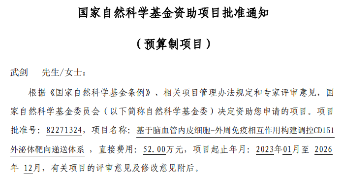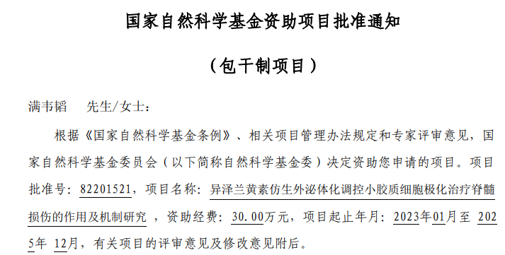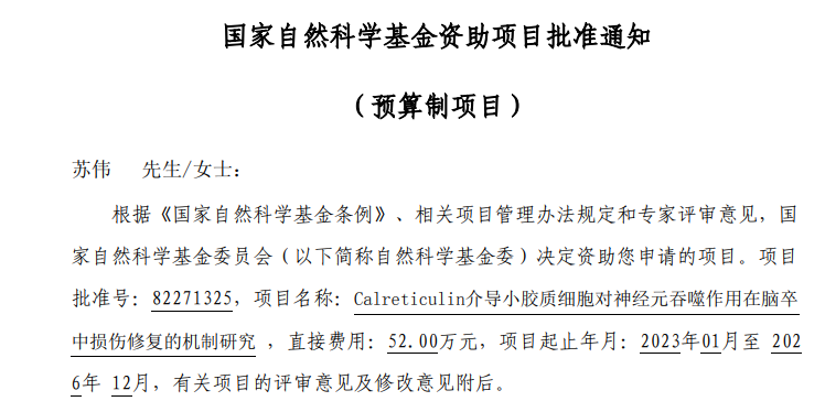 北京清华长庚医院10月8日电(通讯员 陈乐)近日,国家自然科学基金委员会公布了2022年度国家自然科学基金申请集中受理期项目的评审结果。神经中心获批国家自然科学基金项目3项,项目类别为面上项目和青年科学基金项目,资助经费共计134万元。
