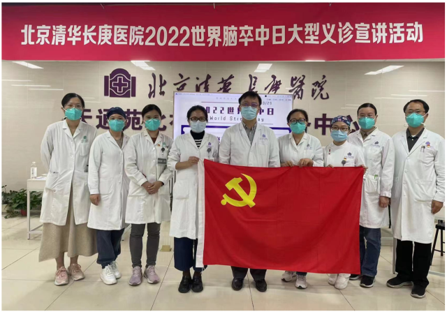 在过去的7年间,清华长庚神经内科伴随清华长庚医院共同成长,逐步完善脑卒中绿道管理流程、优化高危卒中单元配套设施,为脑卒中患者提供最及时、最全面的诊疗。每一年的世界卒中日,神经内科都活跃在疾病科普宣讲的第一线,为老百姓带去健康福音。今年,神经中心完成实体化建设,下设神经内科、神经外科、神经介入科及临床神经科学研究室,正式搭建起神经系统疾病诊疗体系,神经中心党支部便是神经中心的重要战斗堡垒。今年的世界卒中日,中心在党支部的引领下深入社区、借助媒体,采用线下及线上多重形式呼吁卒中防治,让党旗高高飘扬于疾病防治的一线。