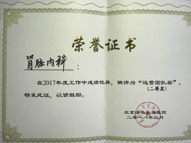 北京清华长庚医院肾内科(王炜 李月红)2月6日立春悄然而至,北京清华长庚医院举行了2017年度总结表彰大会,肾内科在医疗、运营、教学、医保、工会活动和科普宣传等方面,均获得了奖励。
