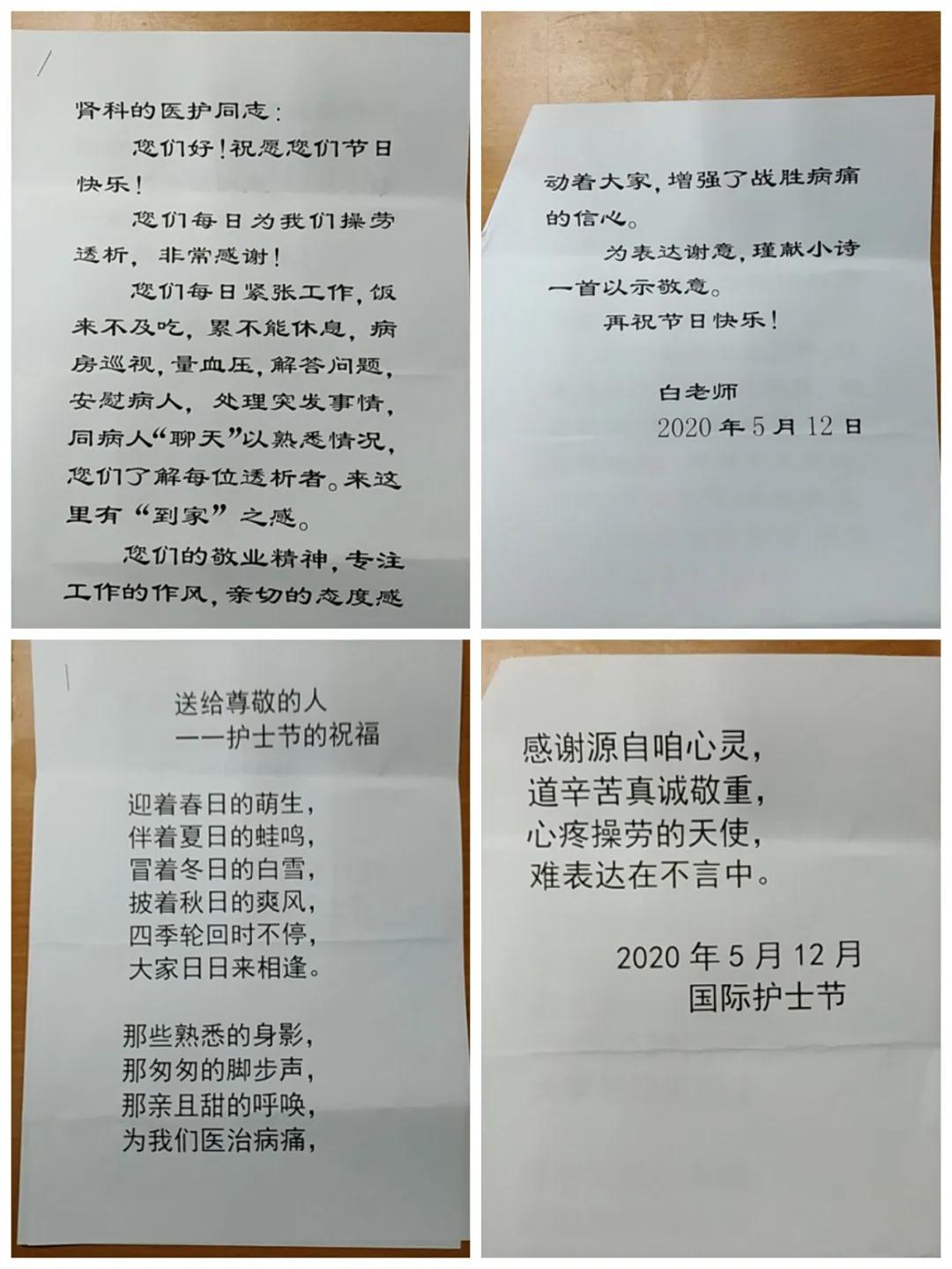 护士节,有鲜花和蛋糕,还有透析患者白老师特意给我们创作的诗歌。