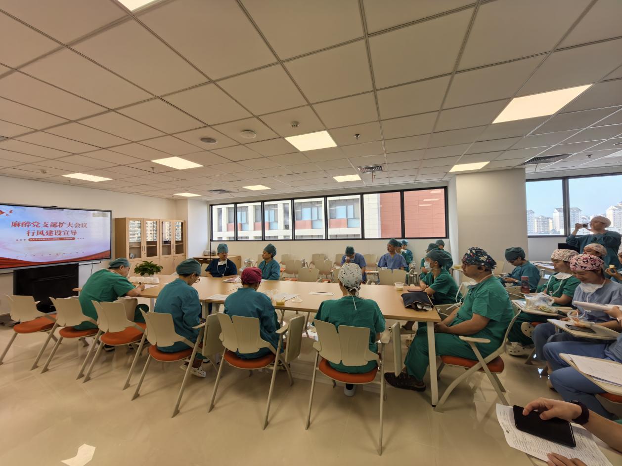 2025年7月21日,麻醉党支部以线下线上相结合的方式召开扩大会议,聚焦 “九不准” 学习及行风建设宣导,确保科室全体人员参与其中。会议伊始,张欢主任与高志峰支部书记分别作简短讲话,强调全体医护人员需严格遵纪守法,时刻以行为规范约束自身言行,筑牢行业作风防线。随后,科室行风负责人温馨同志通过 PPT 宣讲,深入解读相关纪律规定与制度要求,推动行风建设走深走实。