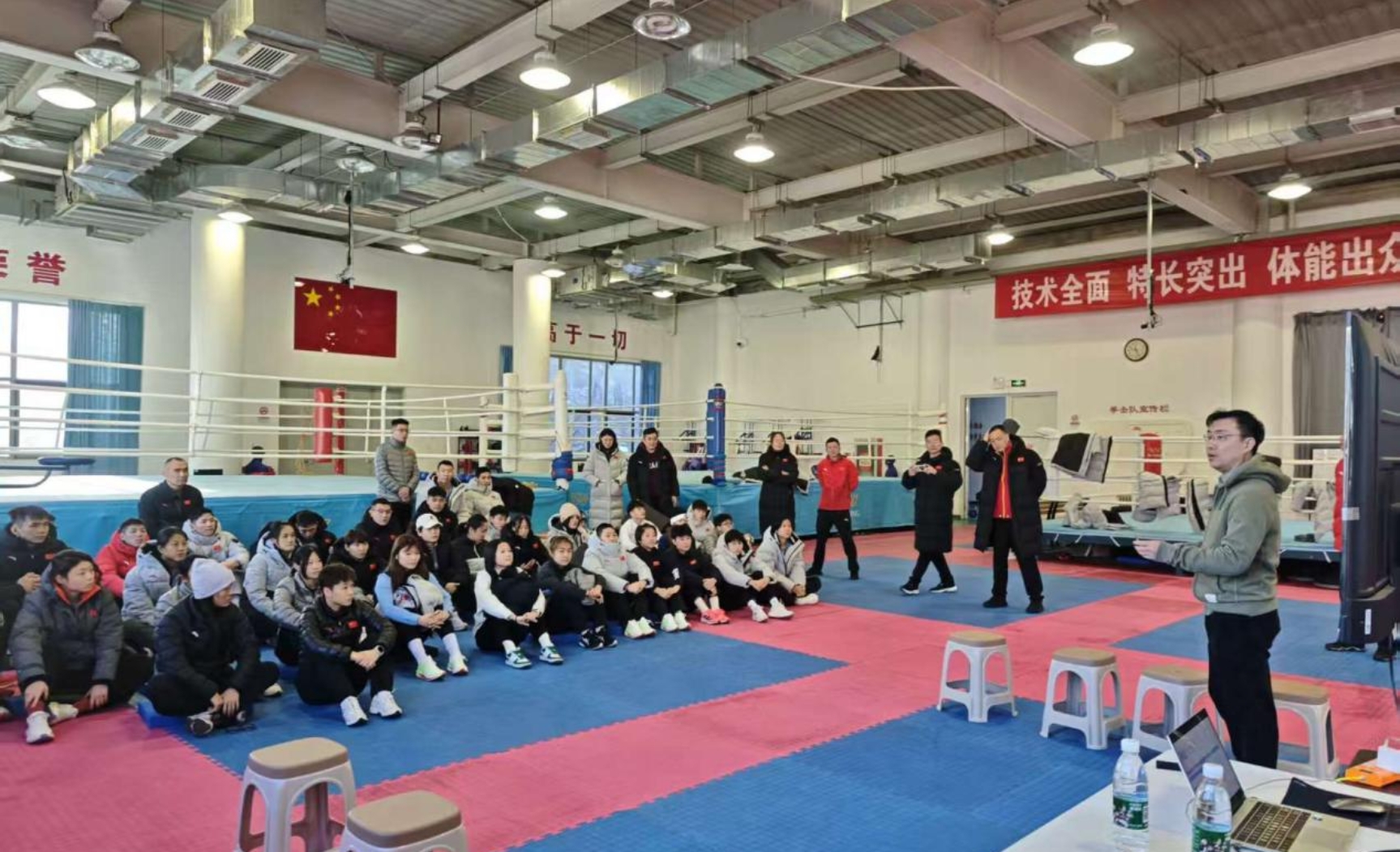 在交流互动环节,现场气氛热烈。拳击运动员们结合自身在长期训练、国内外参赛过程中遇到的实际问题,踊跃向专家们提问咨询。问题涉及长途奔波后的疲劳恢复、失眠多梦的调整、肌肉劳损的缓解、以及比赛中出现的头晕头疼等不适的处理。专家们耐心细致地一一解答,提供了个性化的专业建议和初步指导。