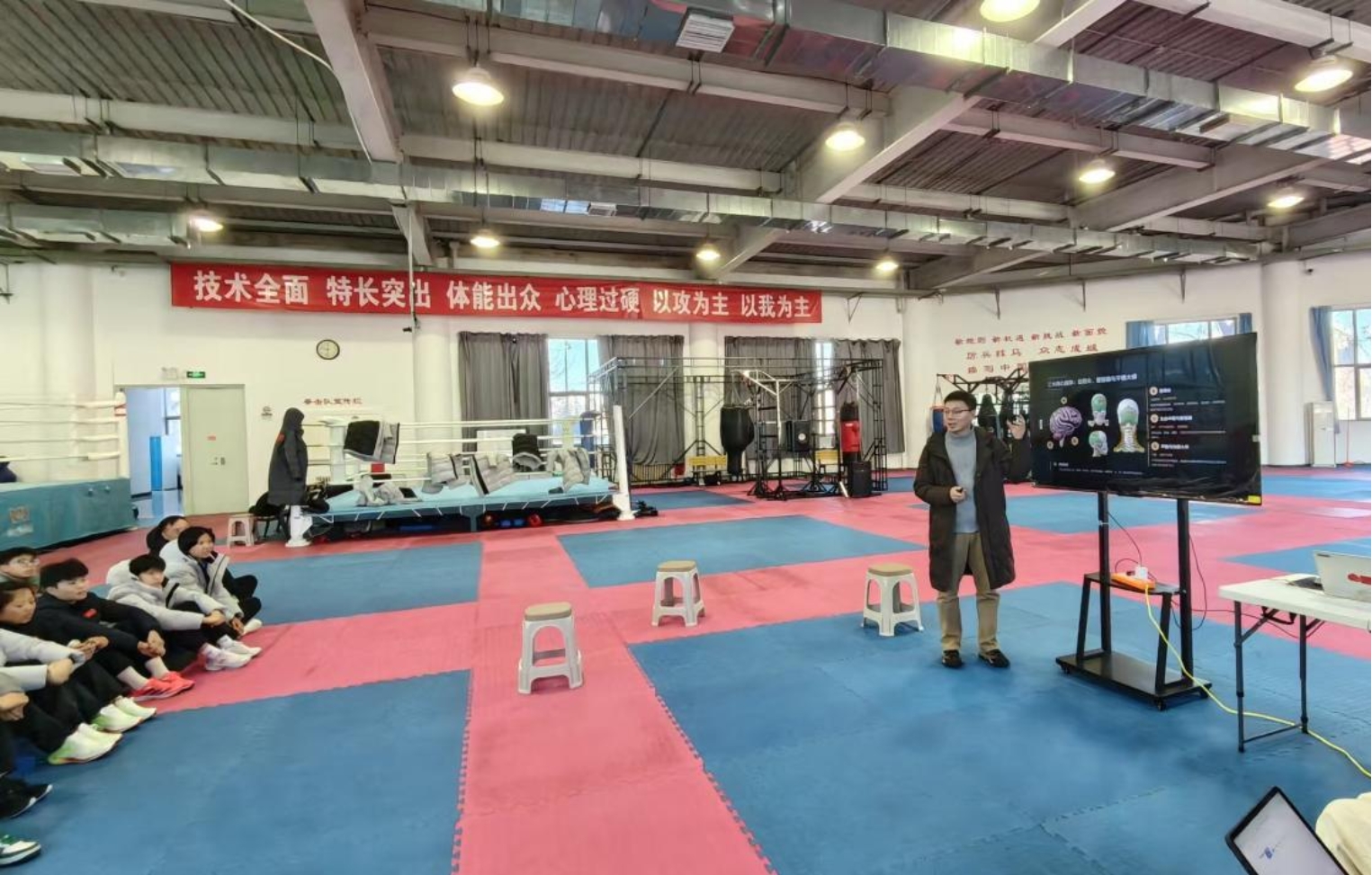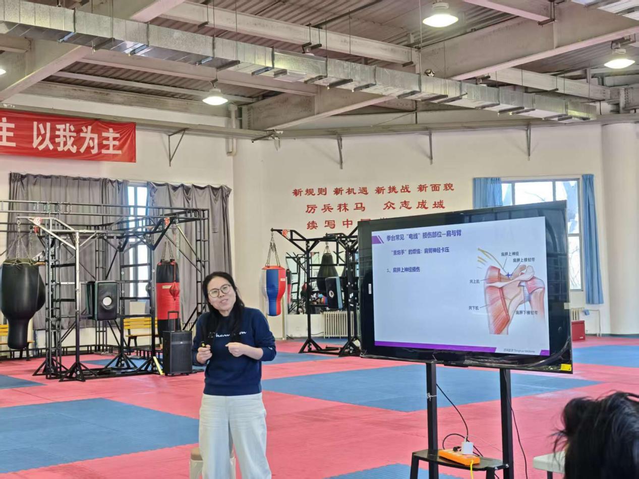 随后,专家团队结合拳击运动项目特点,带来了一系列精彩实用的专题讲座。神经外科张培海副主任深入浅出地讲解了拳击运动中常见的中枢神经系统相关问题,如头痛、头晕的识别与应对;神经内科冯新红主任则聚焦于拳击相关周围神经常见疾病的诊治知识;吴喆护士长详细介绍了脑血流调控及其在运动中的意义。耳鼻喉科许嘉副主任结合生动图示,阐述了与平衡能力紧密相关的前庭器官基础解剖与训练方法;尹国平主任就运动员中可能出现的睡眠障碍及鼾症问题进行了专业科普。康复医学科徐泉副主任重点介绍了训练中常见损伤的预防与科学康复策略。讲座内容紧密贴合拳击运动员的实际需求,兼具专业性与实用性。