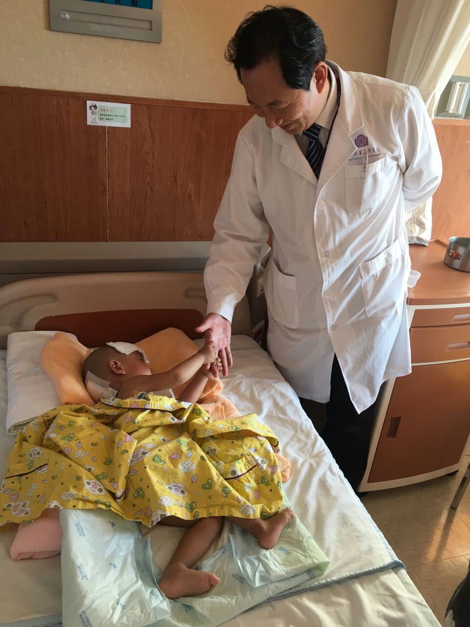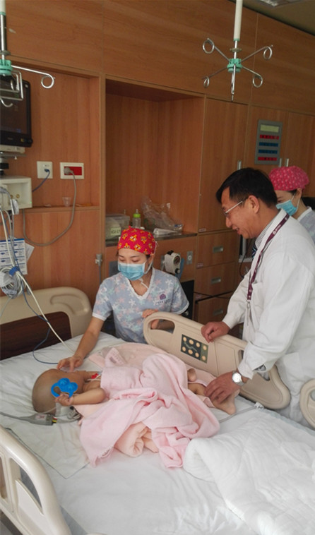 给小朋友做手术绝对不是“小儿科”,手术更有挑战,医生要付出更多的努力和关爱。因小萌无法自述自己的病情及不适,王贵怀主任在门诊对小萌进行了细致的查体,结合对其父母的详询情况,认为是脑干背侧巨大髓母细胞瘤的可能性大,当即收患儿住院治疗。小萌因脑积水,是个大头娃娃,样子呆萌,不太哭闹,怯怯的样子招人怜爱,一入院就成了病房里的小明星。美国著名的百岁儿科医生Leila Denmark每次接诊时都会说,下一个小天使是谁?于是,这位小朋友就成了神经外科的小天使。为了给这个小天使一个未来,医生、护士都细心呵护他。