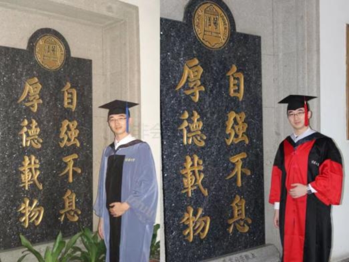 图3 硕士与博士毕业照 图4(左起)张力伟、吴忠学、左焕琮、鲍圣德、张玉琪、王贵怀