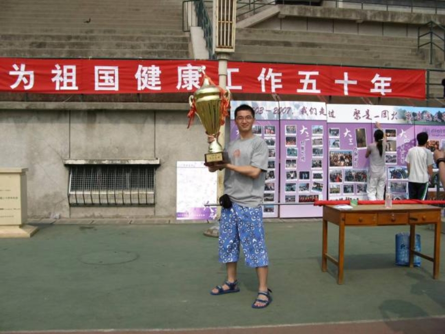 图1陈拓宇在校运会上举旗 图2陈拓宇的清华第一份奖学金