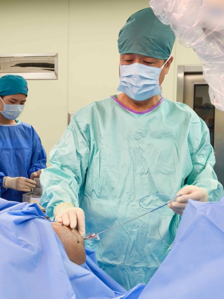 图1:杨学军主任在手术机器人引导下精准植入激光光纤