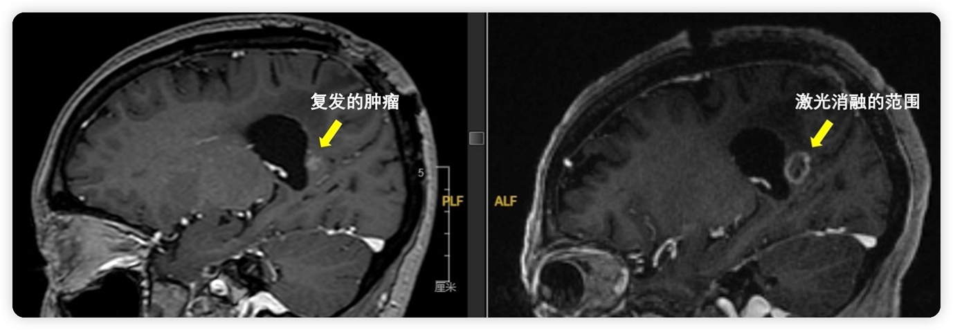 患者宋女士是一位颅内胶质母细胞瘤患者,两年前,她接受了开颅肿瘤切除术及标准的放化疗。然而,在最近的复查中,发现肿瘤在大脑深部、脑室旁复发,直径约8毫米。