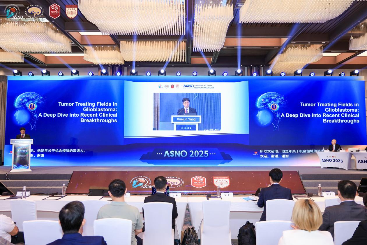 杨学军在会议期间进行两次专题报告,其中以《胶质母细胞瘤的肿瘤电场治疗(TTFields):近期临床突破深度解析》为题,分享了TTFields的最新进展与中国实践经验。该研究为迄今最大规模中国人群TTFields治疗胶质母细胞瘤的观察性研究,研究结果与全球RCT及中国既往真实世界研究一致,也因此改写了《中国抗癌协会脑胶质瘤诊疗指南》。