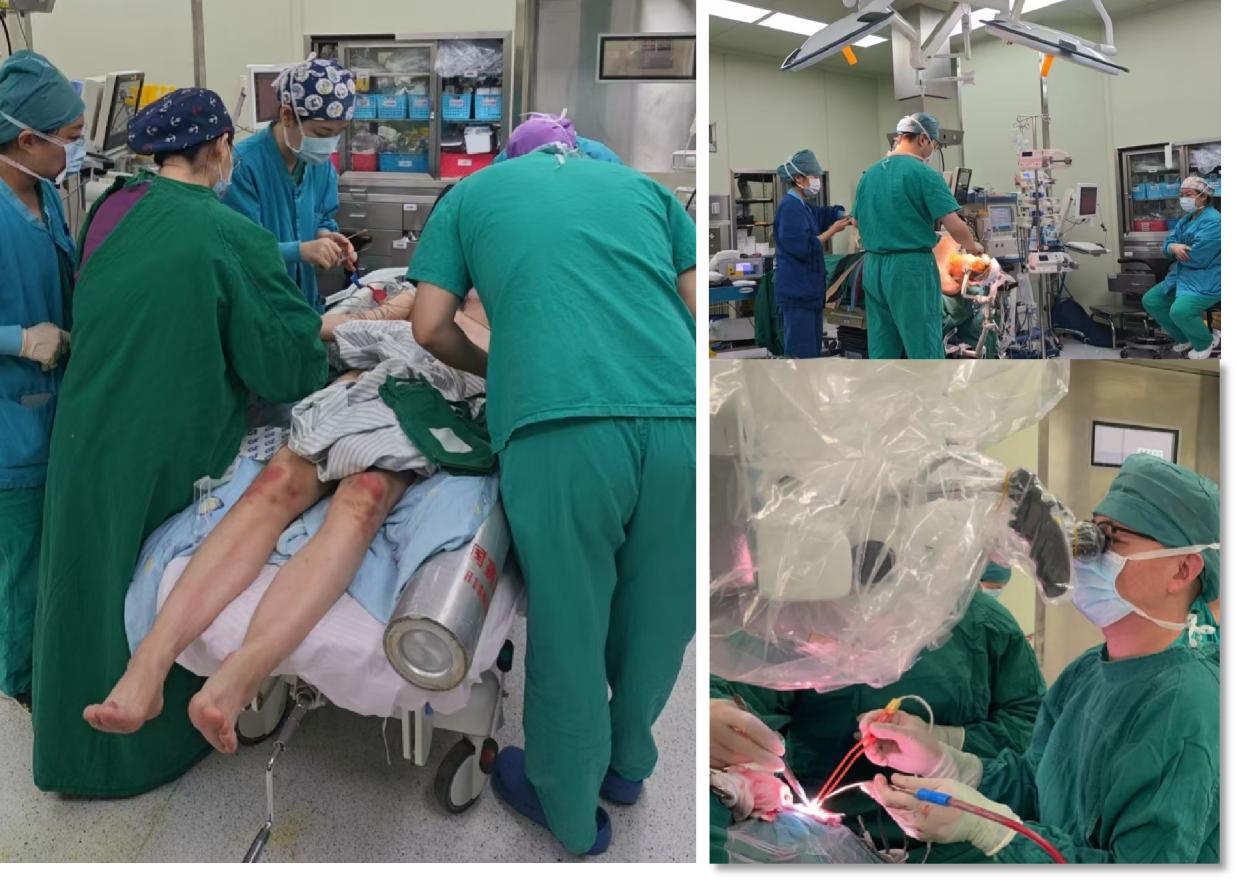 神经外科值班医师张培海副主任医师紧急会诊,立即向郭毅主任汇报病情。经快速而严谨的评估,团队果断制定了“脑室钻孔外引流术联合乙状窦后入路显微镜下脑内血肿清除术” 的急诊手术方案,旨在第一时间降低颅内压、清除血肿、解除脑疝风险。