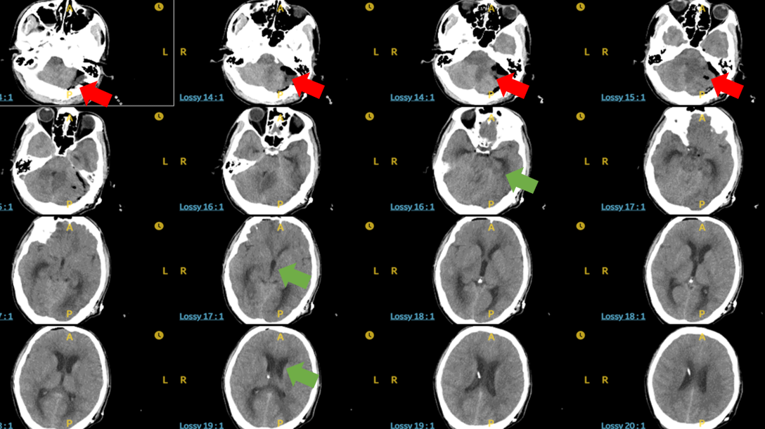 到院时,小王已陷入昏迷,无法言语,呼吸急促,躁动不安并伴有大量呕吐,病情极度危重。急诊科团队立即启动绿色通道,紧急完成头颅CT及脑血管检查,结果提示:脑出血(脑内血肿),并已引发急性脑积水、枕骨大孔疝——这意味着脑组织正遭受严重压迫,脑干功能濒临衰竭,患者随时可能出现呼吸、心跳骤停,生命危在旦夕。