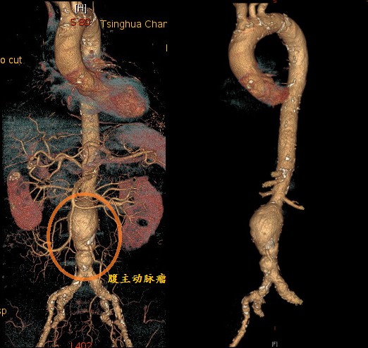 大多数腹主动脉瘤患者在血管破裂前几乎没有任何症状,在这种情况下,早期诊断、尽早治疗就显得尤为重要了。临床用于血管疾病的检查方法很多。首先是彩色多普勒超声检查,无创、廉价、操作简便,不但能迅速发现腹主动脉瘤,还能提供许多重要瘤体信息,如动脉瘤直径、长度、硬化斑块大小、血栓情况等。其次是增强CT检查,静脉注射造影剂可增强显示血流、提供管壁信息,通过三维重建,立体化呈现血管病变。腹主动脉瘤患者多数有动脉粥样硬化,可已影响心、脑、肾、肺等各大重要脏器,所以需要评估全身情况,比如,心电图、超声心动图了解心脏功能、有无心肌缺血等。