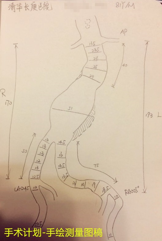 为此,血管外科专门召集肝胆外科、麻醉科组成多学科会诊小组,为王伯伯设计周密的治疗方案,搭建以吴巍巍主任、麻醉科张欢主任、肝胆外科曾建平教授为核心的治疗团队,敲定同期进行胆道结石与腹主动脉瘤手术。血管外科吴巍巍主任仔细阅片、测量,组织全科讨论,精密制定经皮穿刺腹主动脉覆膜支架植入的腔内治疗方案。麻醉科张欢主任依据患者既往血压控制情况及用药情况,仔细评估麻醉风险,针对可能出现的循环呼吸异常及手术时间较长的困难,谨慎制定多套麻醉预案。肝胆外科曾建平教授术前根据MRCP对患者胆道疾病与胆道走向进行了充分评估,谨防术中胆道损伤,术前指导控制感染,纠正患者水电解质紊乱。