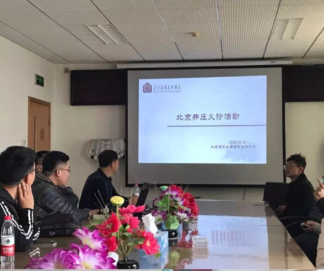 2018年10月20日,北京清华长庚医院整形外科与清华大学医学院研究生共赴延庆区井庄镇开展“红色1+1”主题活动。陈强医师、张翠翠护士长参加本次活动,深入调研基层卫生状况,助力当地党建医疗双发展,为当地医务工作者详细介绍了整形外科和医美相关疾病和治疗方式;