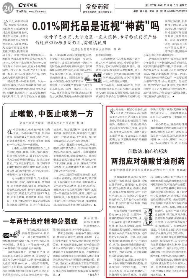 新闻链接:《生命时报》第1567期 第20版