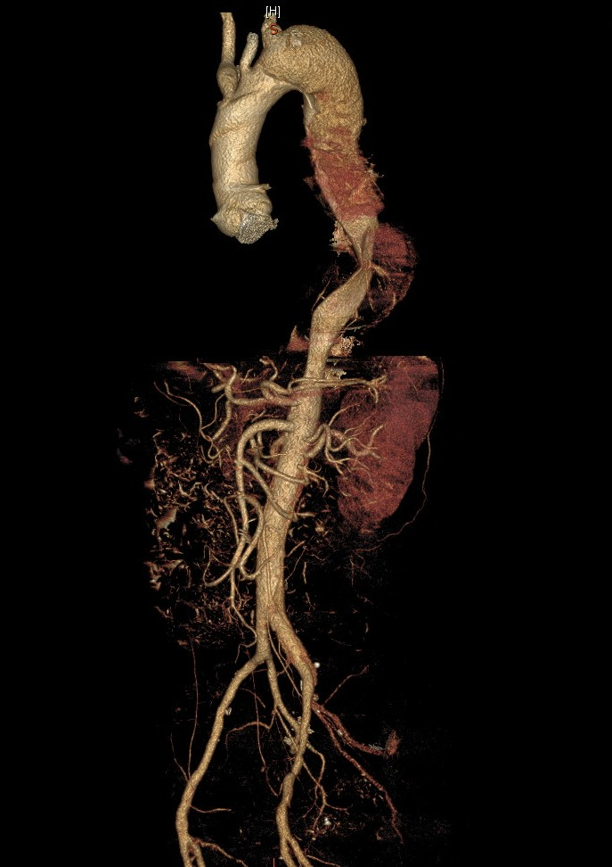 (图1)主动脉夹层(Stanford B型)累及左侧锁骨下动脉
