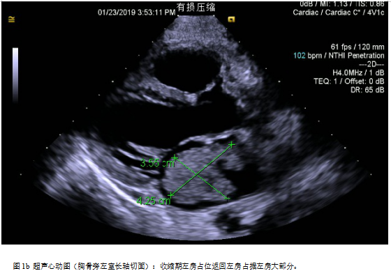 患者女,37岁,主因“间断胸闷憋喘伴咳嗽20天”入院。患者20天前活动后出现胸闷憋喘现象,伴咳嗽,休息后可自行缓解,无胸痛、心悸、头晕、乏力、恶心、呕吐、黑曚、意识丧失、体温升高,全身疼痛等不适,未特殊处理,上述症状于活动后间断出现,数次每天。1天前患者再次出现上述症状时就诊于当地医院,行心脏彩超考虑“左房粘液瘤”,患者今晨1:30于宾馆上厕所时发生晕厥现象,无恶心呕吐,平躺2分钟左右清醒,伴面色苍白,急打120送至我院急诊科,予吸氧心电监护等治疗后患者面色逐渐红润,以“左房粘液瘤”收入院。