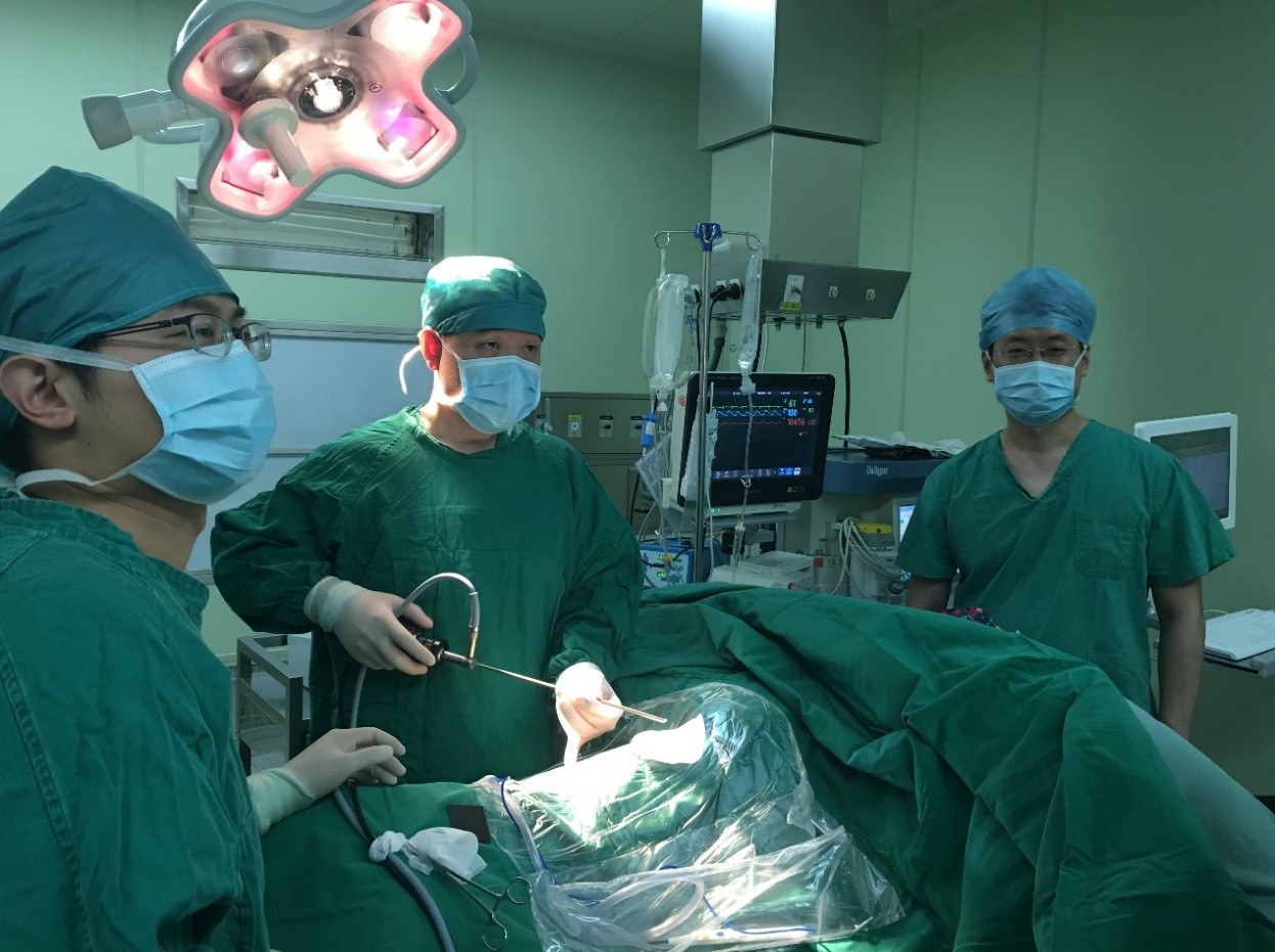 与病人沟通后,张萍教授和胸腔外科陈东红主任一起为患者制定了周密的手术方案,为了避免术中出现交感神经损伤导致的心动过缓,心内科佘飞医师在术前为患者植入临时心脏起搏器,并在手术过程中全程为患者进行心脏监护。