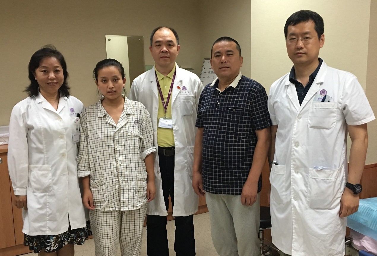 图5 出院前患者父女与张萍教授、陈东红主任、佘飞医师合影