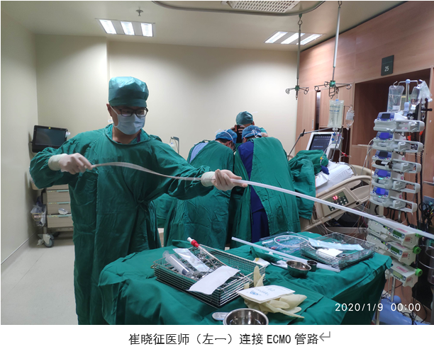 虽说是一把救命的“神器”,但想驾驭起来也并不容易,需要心脏内科及心脏外科的默契配合。在心脏中心张萍部长的协调下,薛亚军主任迅速将老孙的病情发展及使用ECMO的必要性告知心脏外科沈冬焱医师及崔晓征医师,心脏外科团队迅速来到患者床旁,系统评估了患者的病情,肯定了该患者满足ECMO的适应症。随后薛亚军医师向患者家属交代病情,家属也同意应用ECMO维持患者生命。